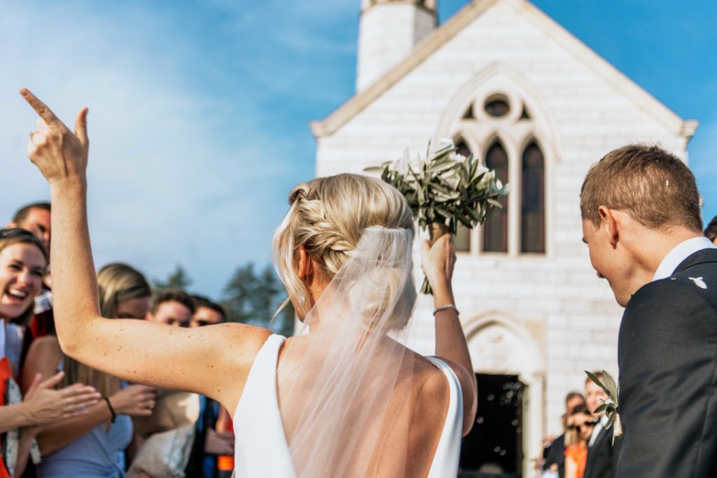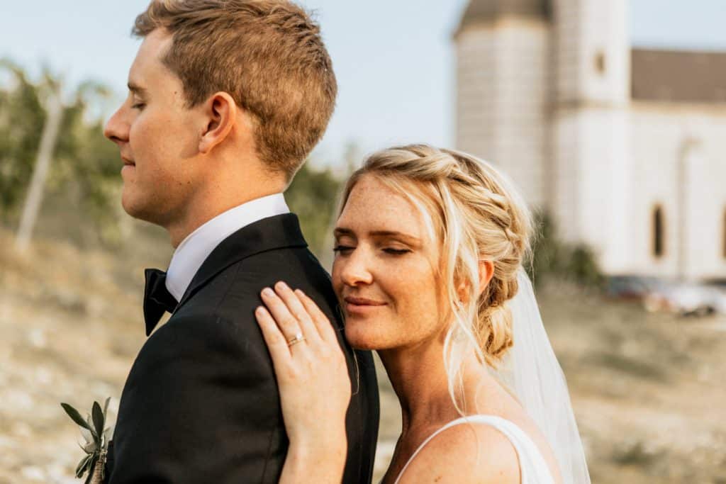 La cérémonie laïque a été célébrée devant cette chapelle au point de vue culminant du château. Grâce aux beaux jours le vin d’honneur a pu se dérouler à l’extérieur au rythme du chant des cigales, autour des vignes.