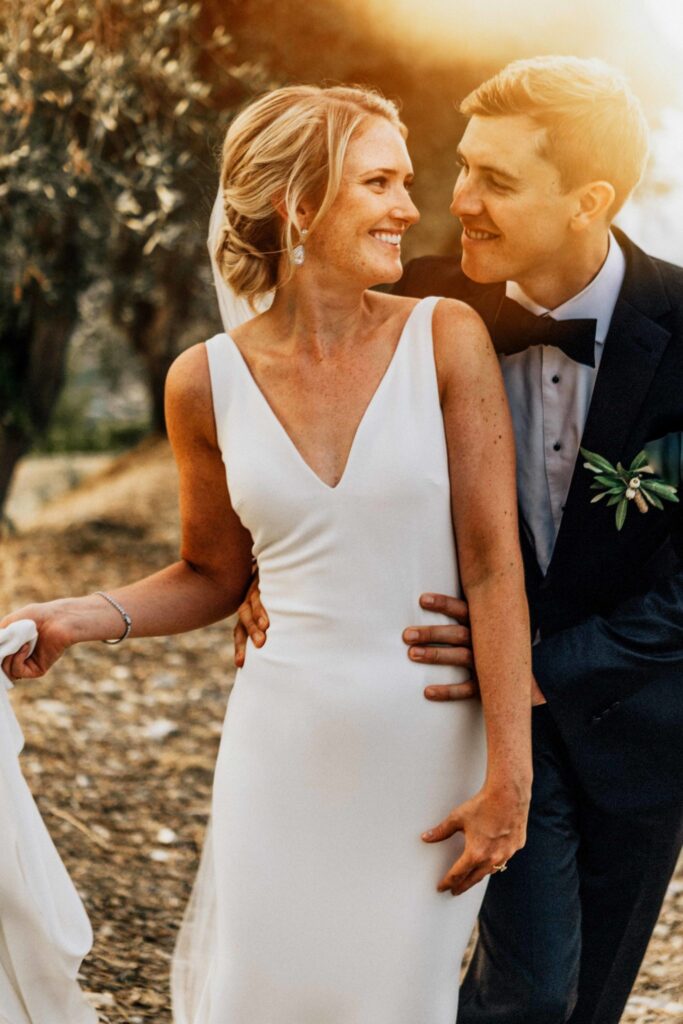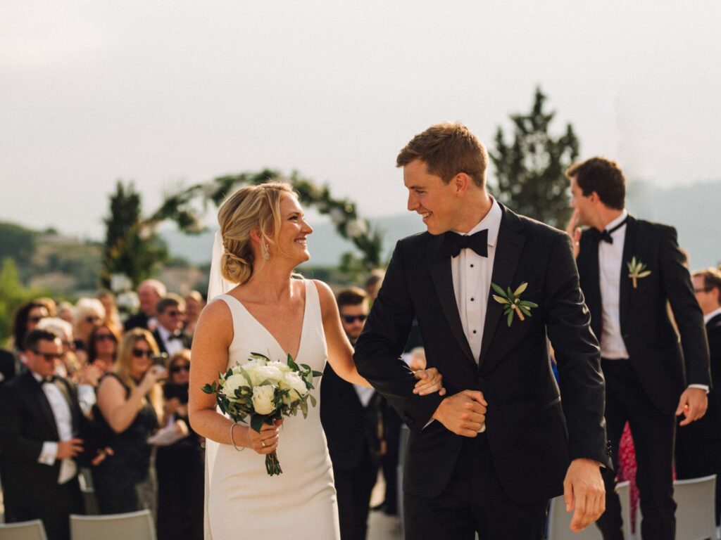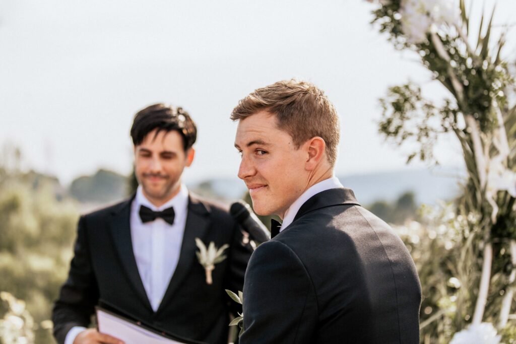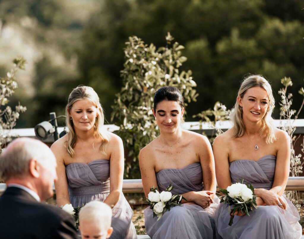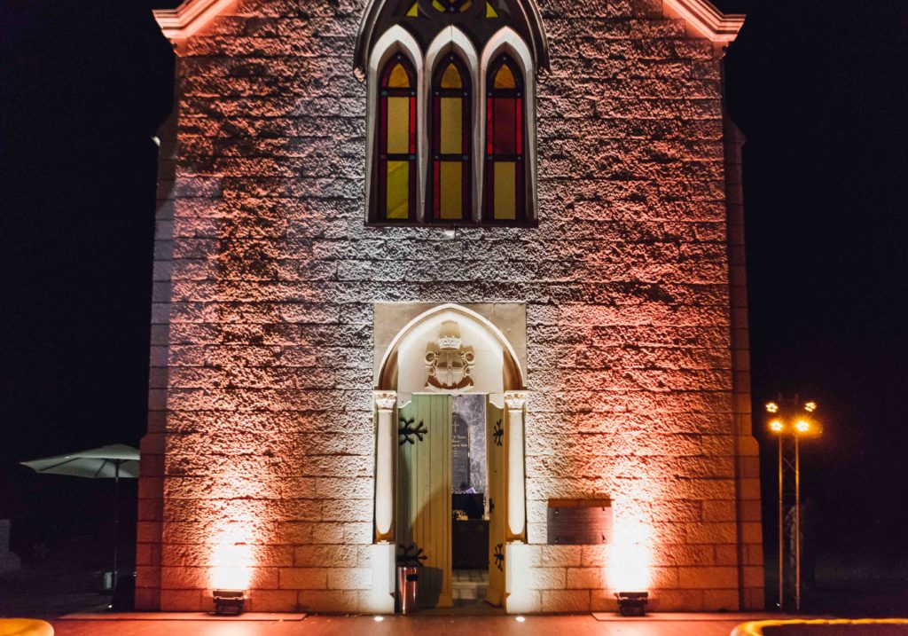 The lay ceremony was celebrated in front of this chapel at the highest point of the castle. Thanks to the good weather, the toast was held outside to the rhythm of the cicadas, around the vines.